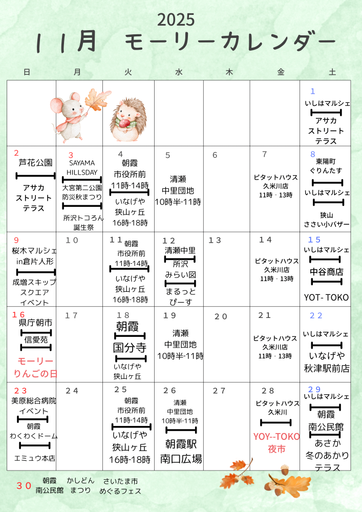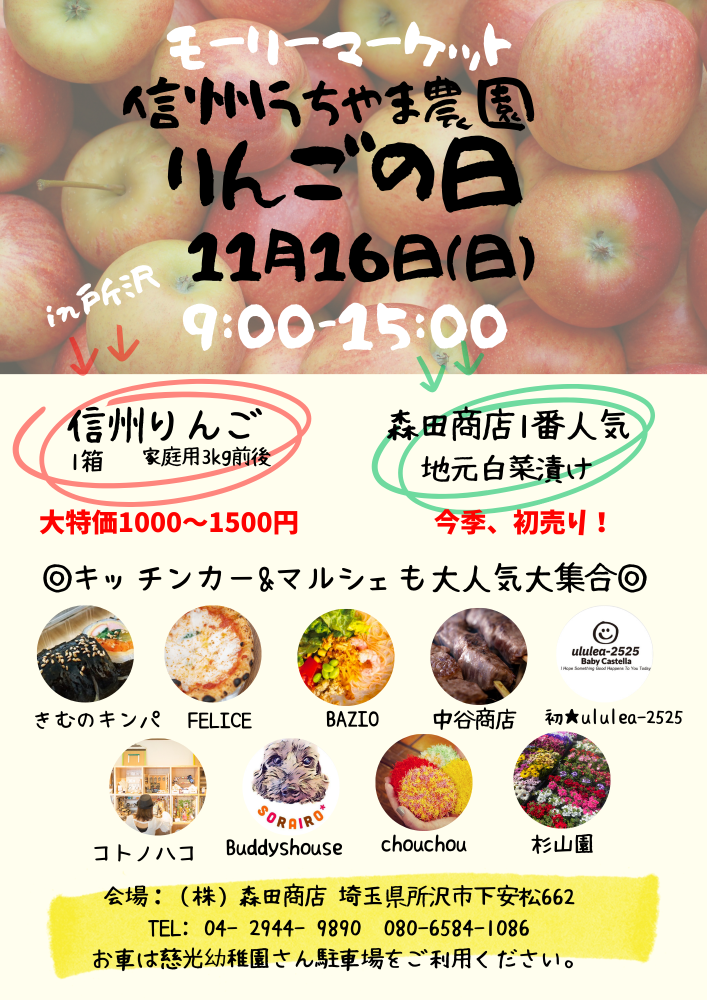 次回のモーリーイベント11月16日(日)モーリーりんごの日12月14日(日)モーリーマーケット