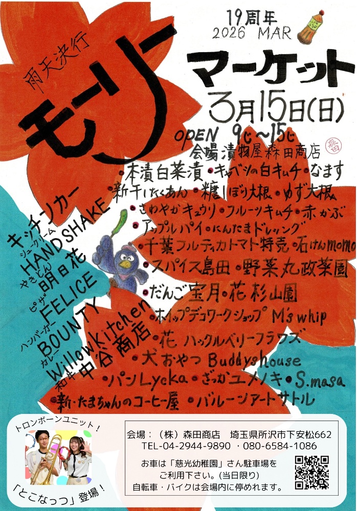 次回のモーリーイベント3月15日(日)モーリーマーケット19周年