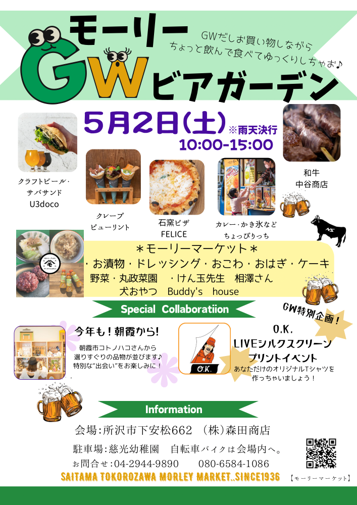 次回のモーリーイベント5月2日(土)モーリーGWビアガーデン
